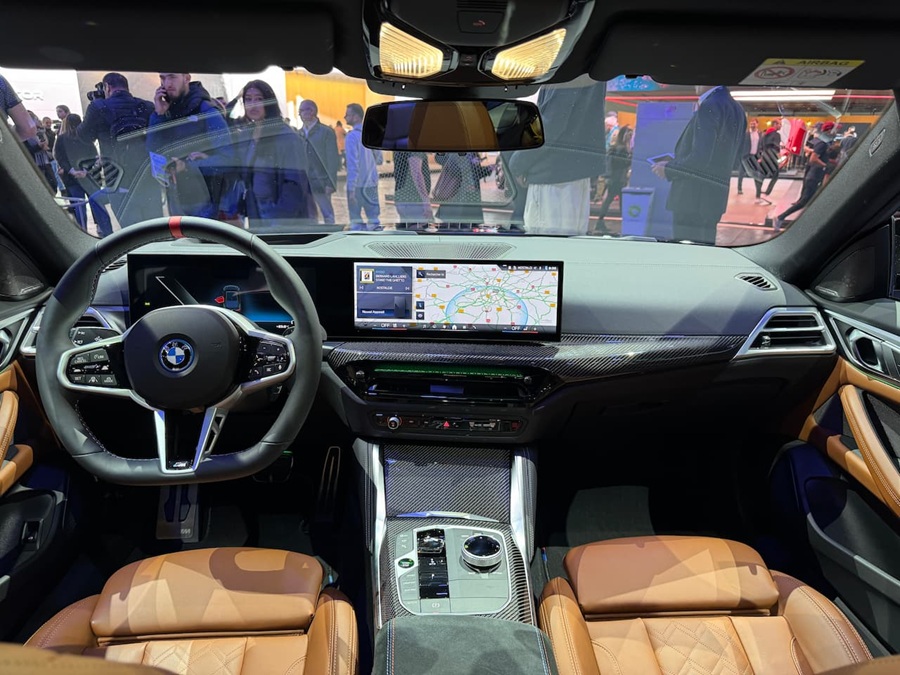 El BMW i4 del 2025, con un precio inicial de $52,200, presenta un interior minimalista con fibra de carbono expuesta y una pantalla curva de 14.9 pulgadas que integra todo sin clutter.