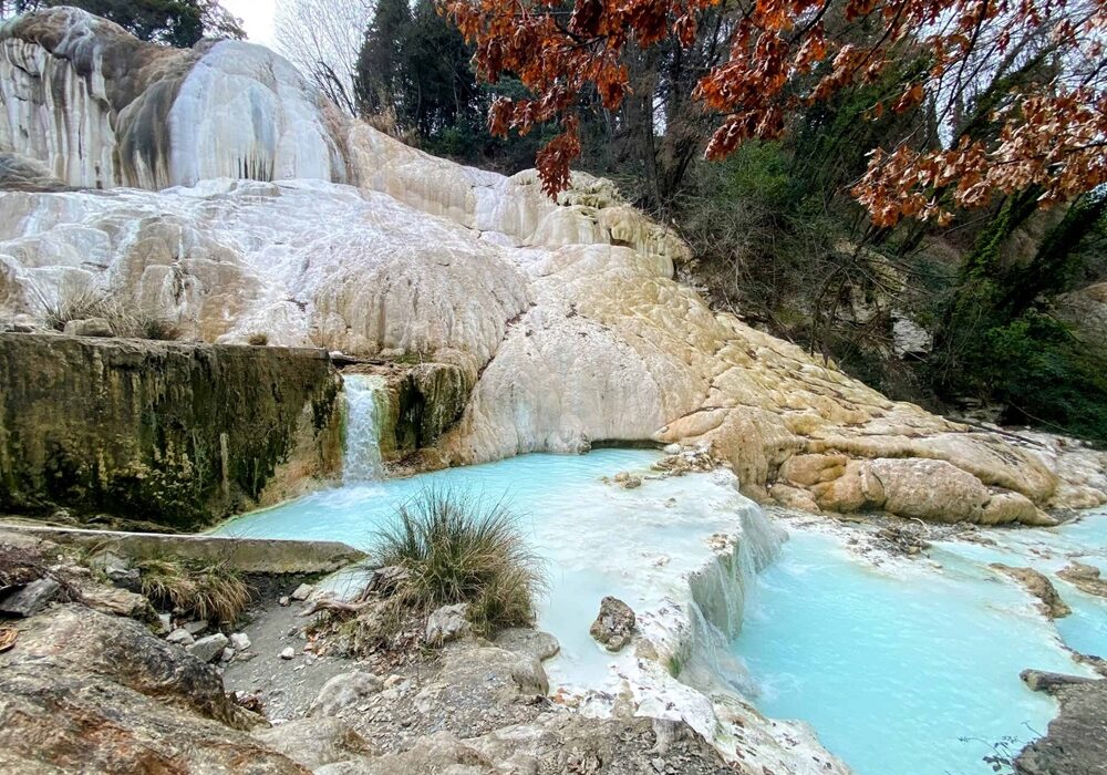 Baths of San Filippo, en Bagno Vignoni, Toscana, Italia, es un secreto etrusco con cascadas termales de azufre blanco que forman piscinas naturales a 37°C, ricas en minerales que alivian dolores articulares y piel.